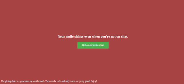A pickup line generator which is based on the open-sourced GPT-2 model by OpenAI. Services used: